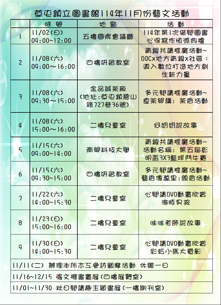 草屯鎮立圖書館114年11月份藝文活動