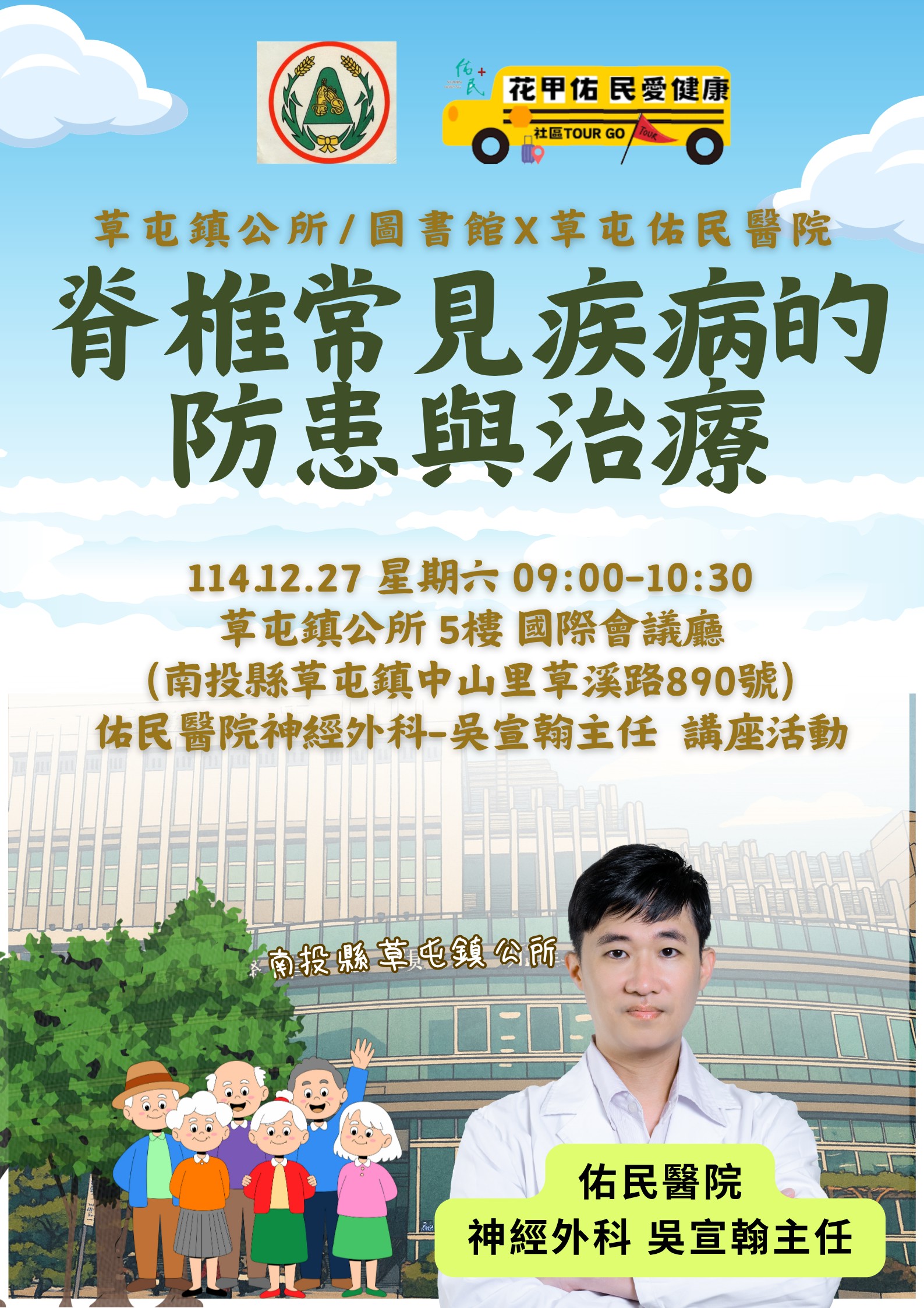 草屯鎮立圖書館健康講座&主題 : 脊椎常見疾病的防患與治療&主講人:佑民醫院神經外科 吳宣翰醫師